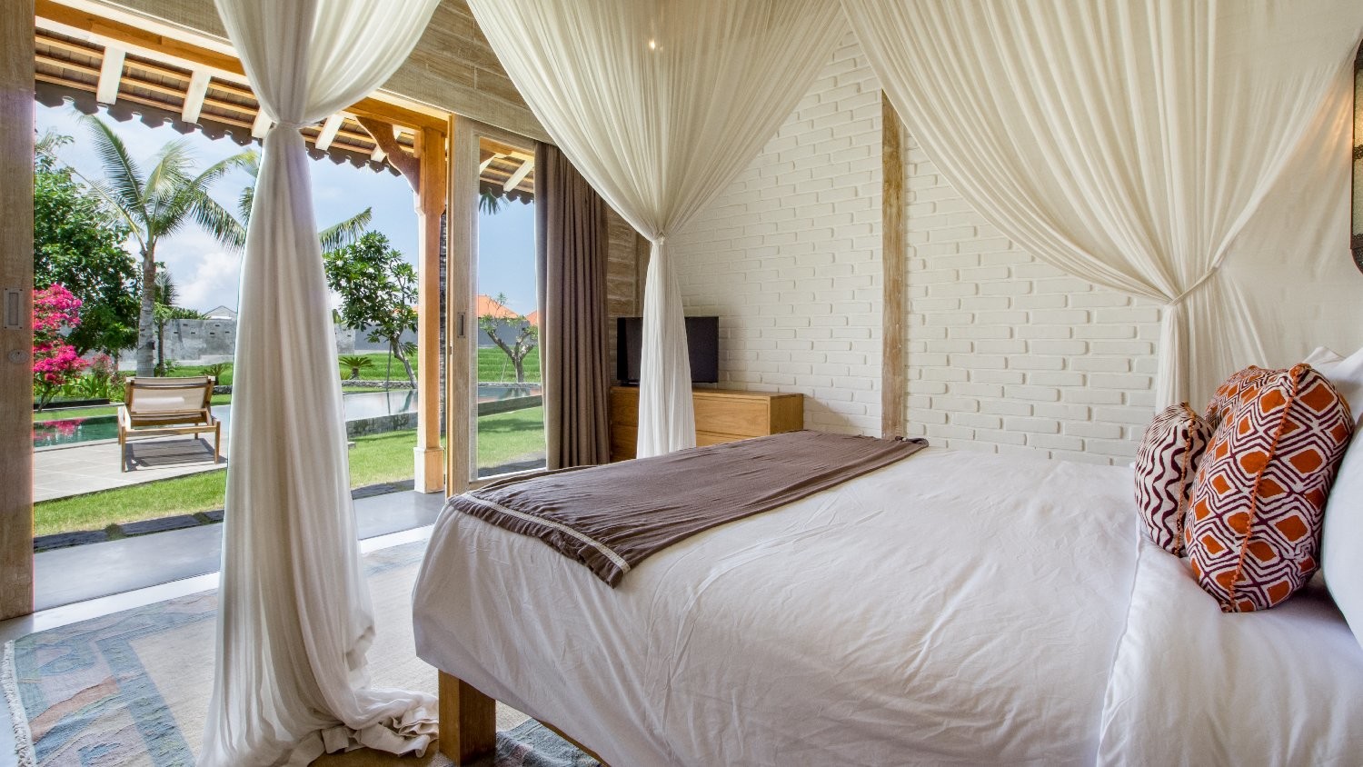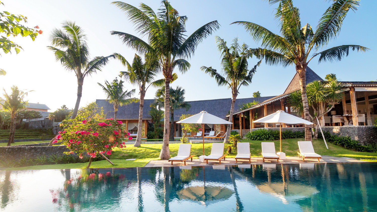 Four other bedrooms are in two separate pavilions beside the 15-meter swimming pool.